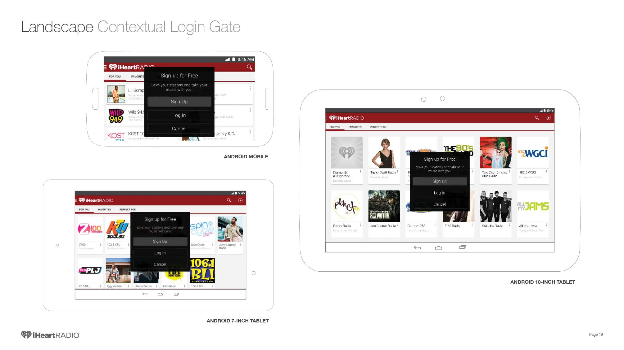 Once the designs for Android mobile portrait were finalized, I adapted the designs for landscape, making an effort to keep sizes between orientations as consistent as possible. I then created the designs for 7-inch and 10-inch tablet devices.